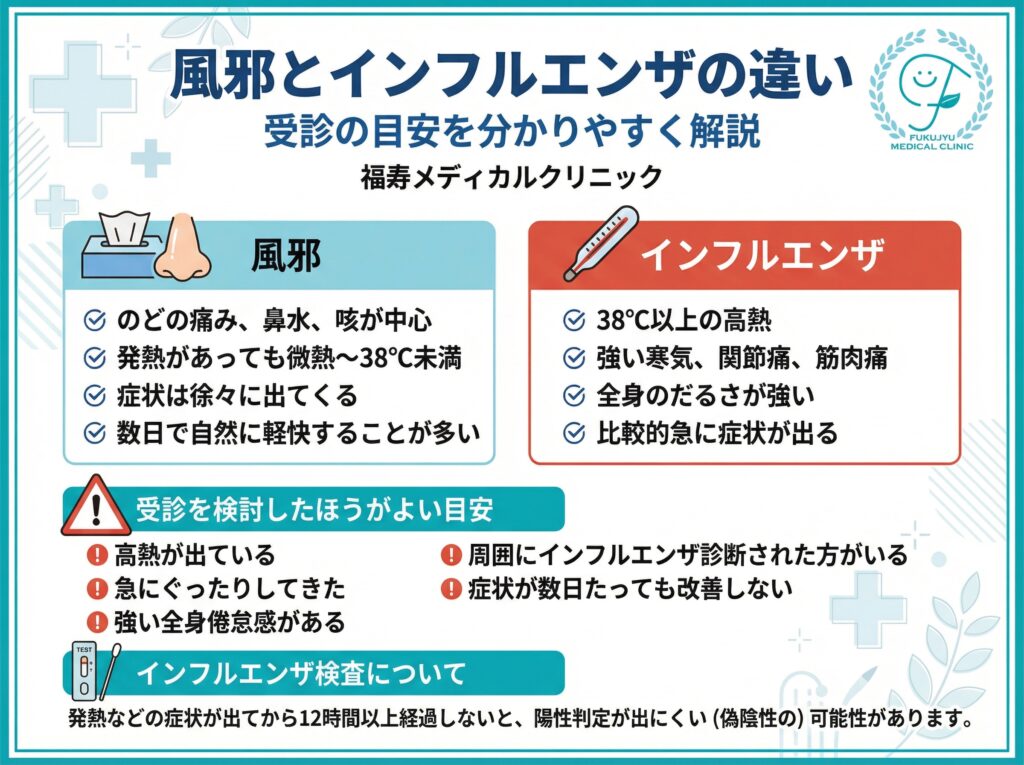 「これは風邪なのか、インフルエンザなのか」と迷われる方は多いのではないでしょうか。