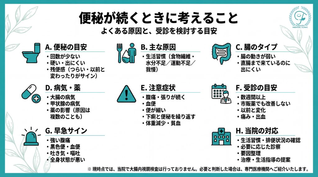 当院では、便秘の症状について、